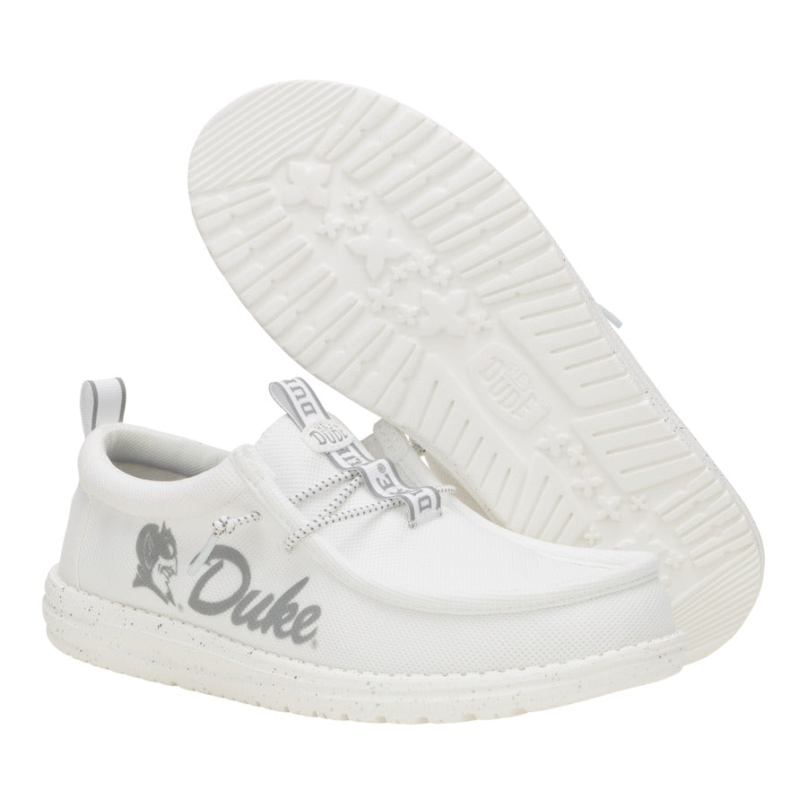 Our new unisex Wally Duke Blue Devils White has tackled the problem of going with EVERYTHING in your closet. We know you love their colors but wearing your team pride with anything is a huge win. Reflective. white-out style for major game day versatility. It’s like a blank campus for your outfit. Did we say campus We meant canvas Freudian slip.