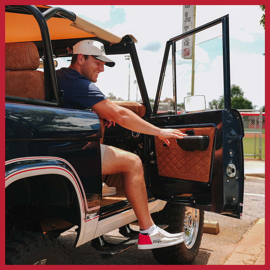 Gooooooooo dawgs. sic ’em! Take it from the tailgate to the Dawg Walk to Sanford Stadium in vintage-inspired slip ons stitched with Athens pride. Bulldog red and white. UGA details. And gameday-ready comfort. These are for the real ones who know what’s coming down the track.
