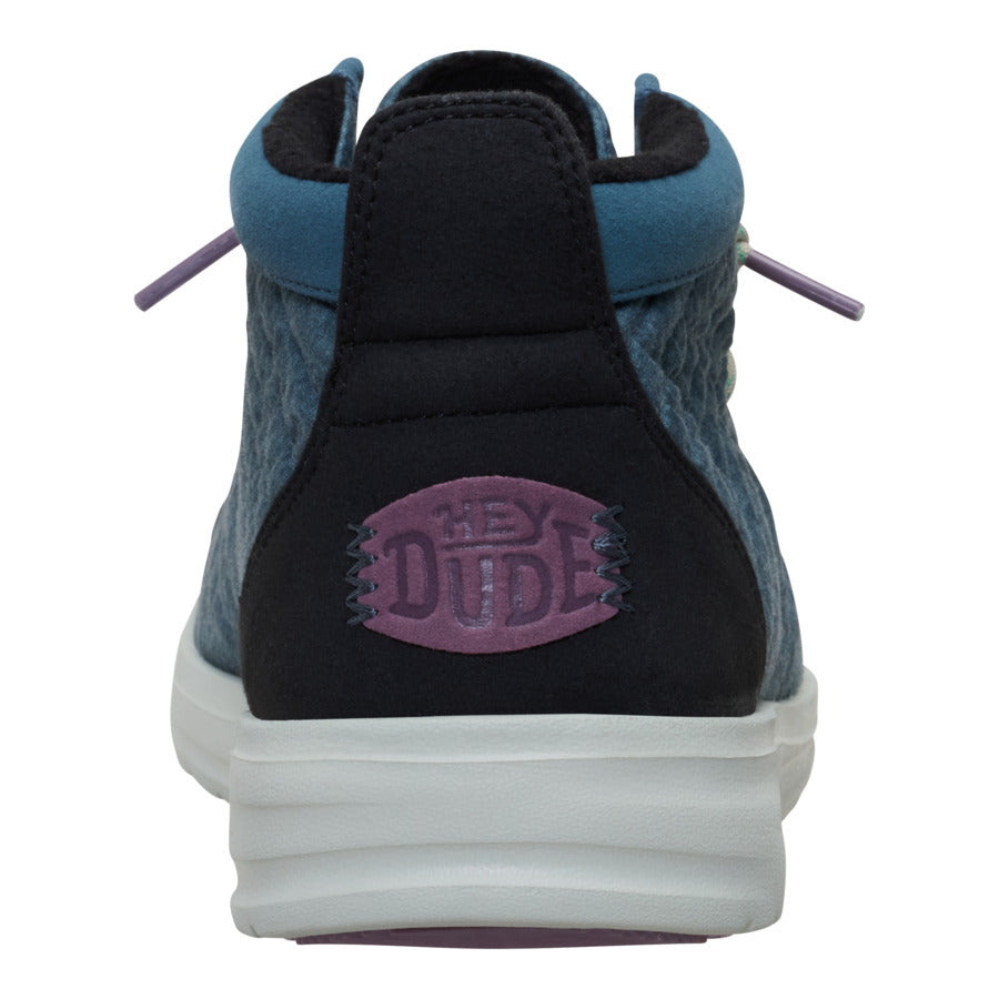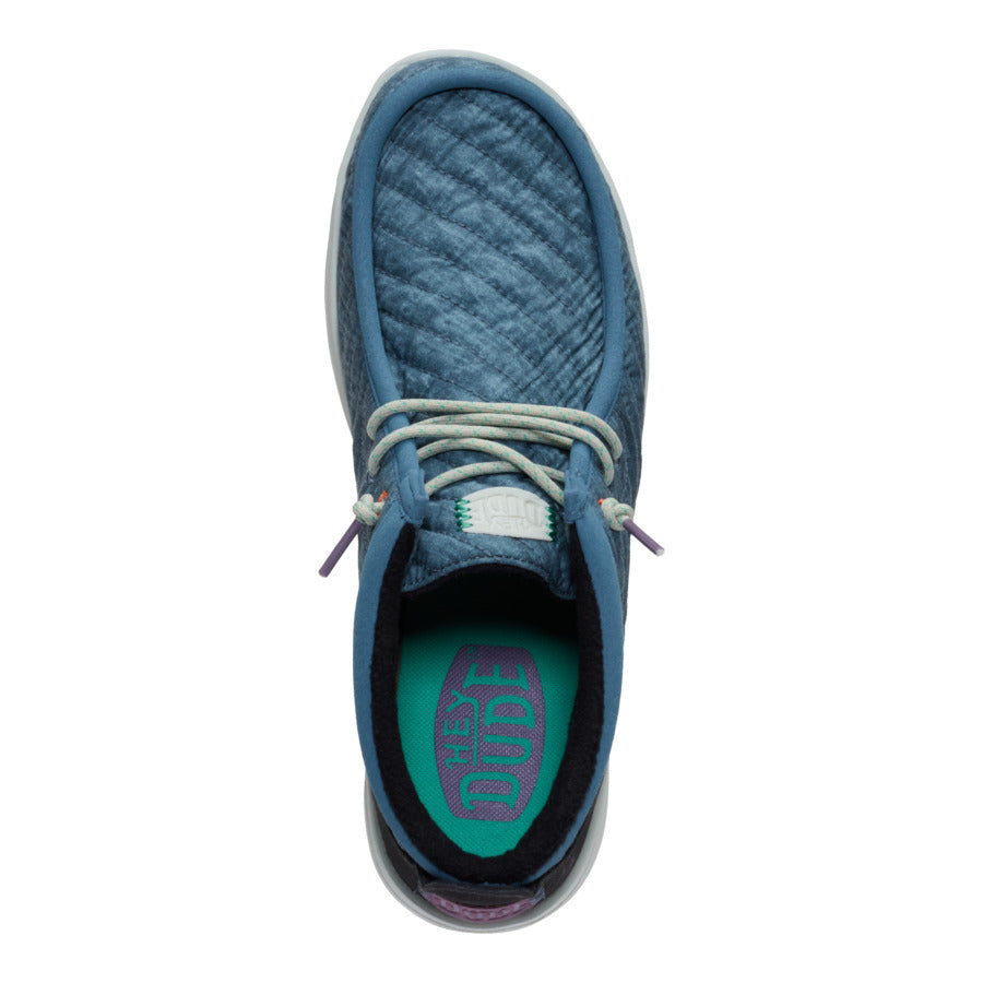Quilted on the outside with a cozy microfleece lining. these Wally Mid shoes swaddle your feet in softness and warmth without losing their famous HEYDUDE?cool. The easy-on system and elastic laces mean you don’t have to tie keep the fit snug and hassle-free. The lightweight. flexible sole makes every step a delight.